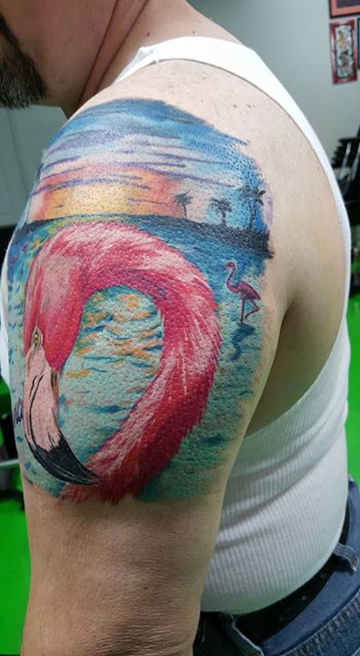 I'm sorry for your loss, it's a beautiful tattoo. What is t significance of th flamingo if you don mind me asking?