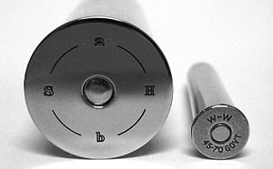 The cartridge next to a .45-70. he 2 bore fired a 3600 grain bronze or lead solid. 3600 grains is half a pound. The charge used by hunter Sir Samuel Baker was 270 grains of powder. This is about half the charge the rifle can take without taking too much of a beating.