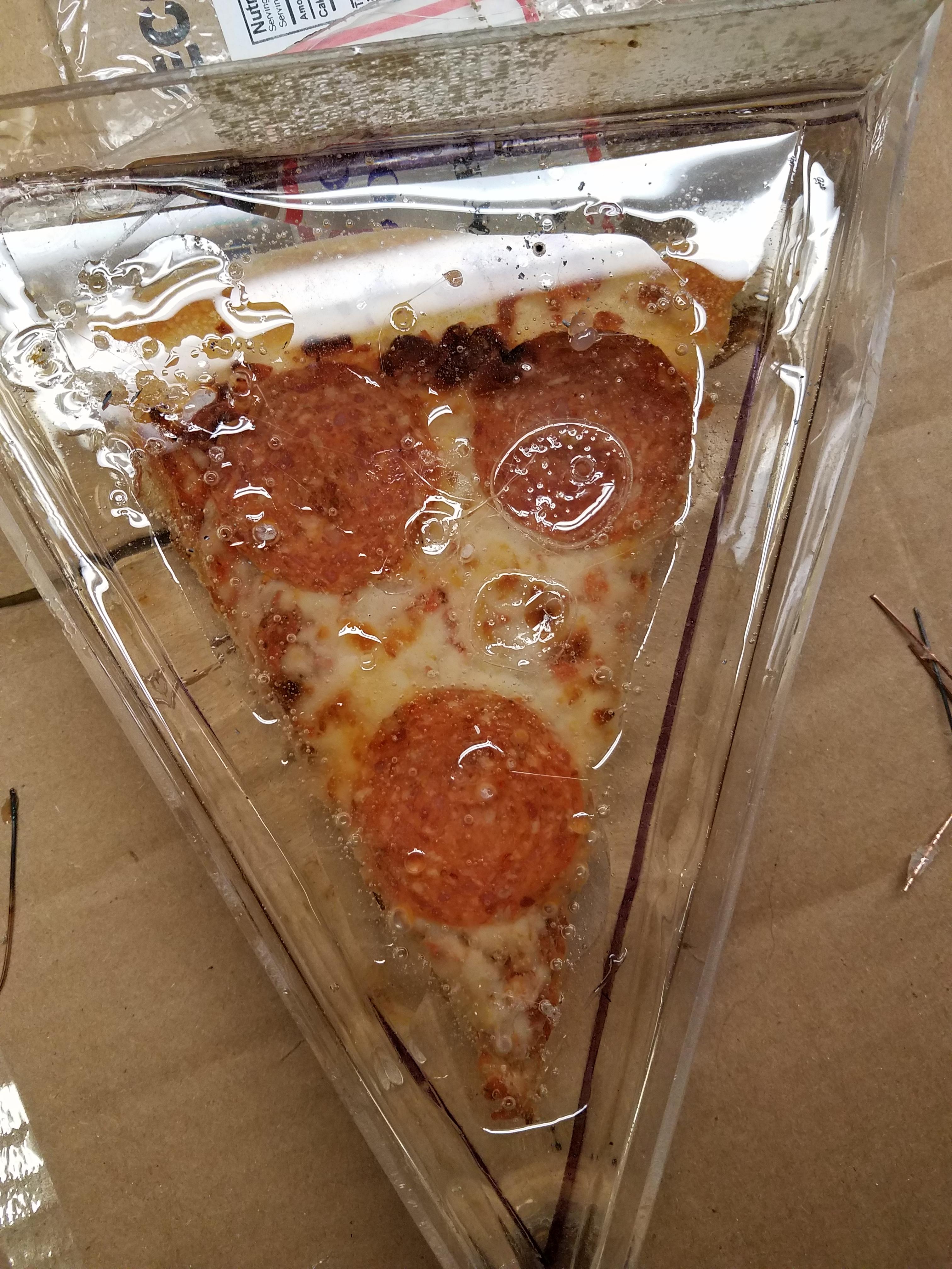 So this is what I was going for, a neat idea I saw on the internet a few months ago. Basically it's just pizza encapsulated in some epoxy resin.