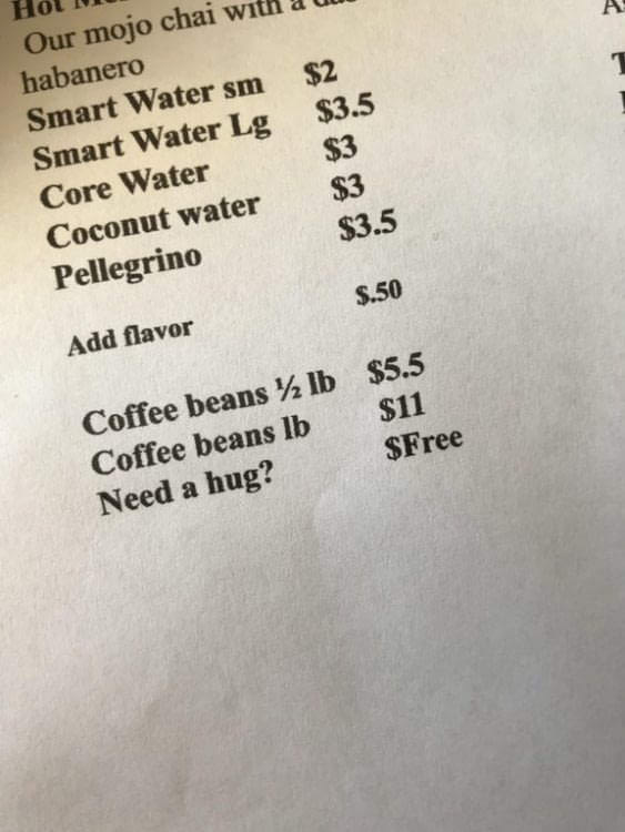 3. I think more restaurants should offer more free hugs.