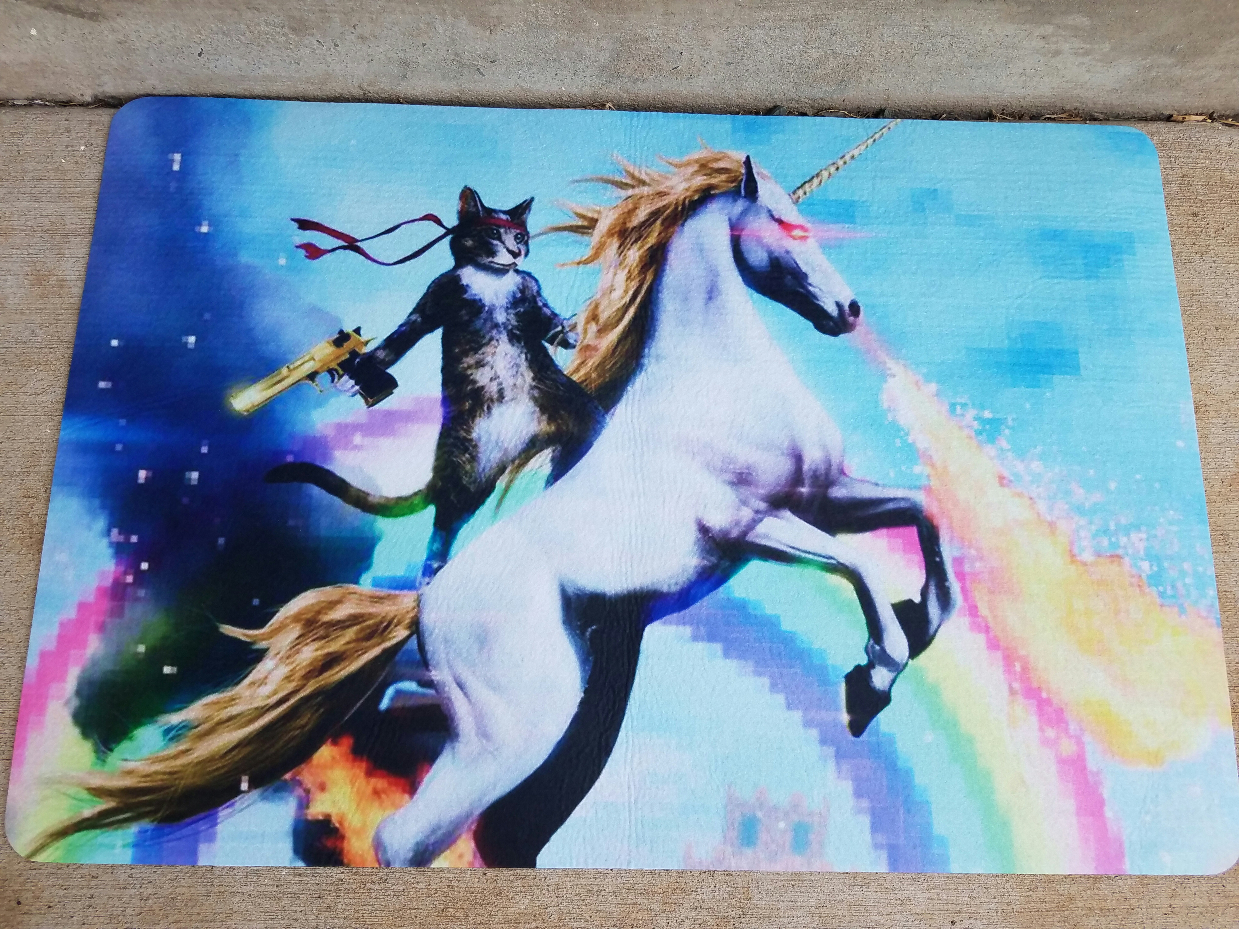 Never knew I wanted a doormat of a cat riding a unicorn until today.