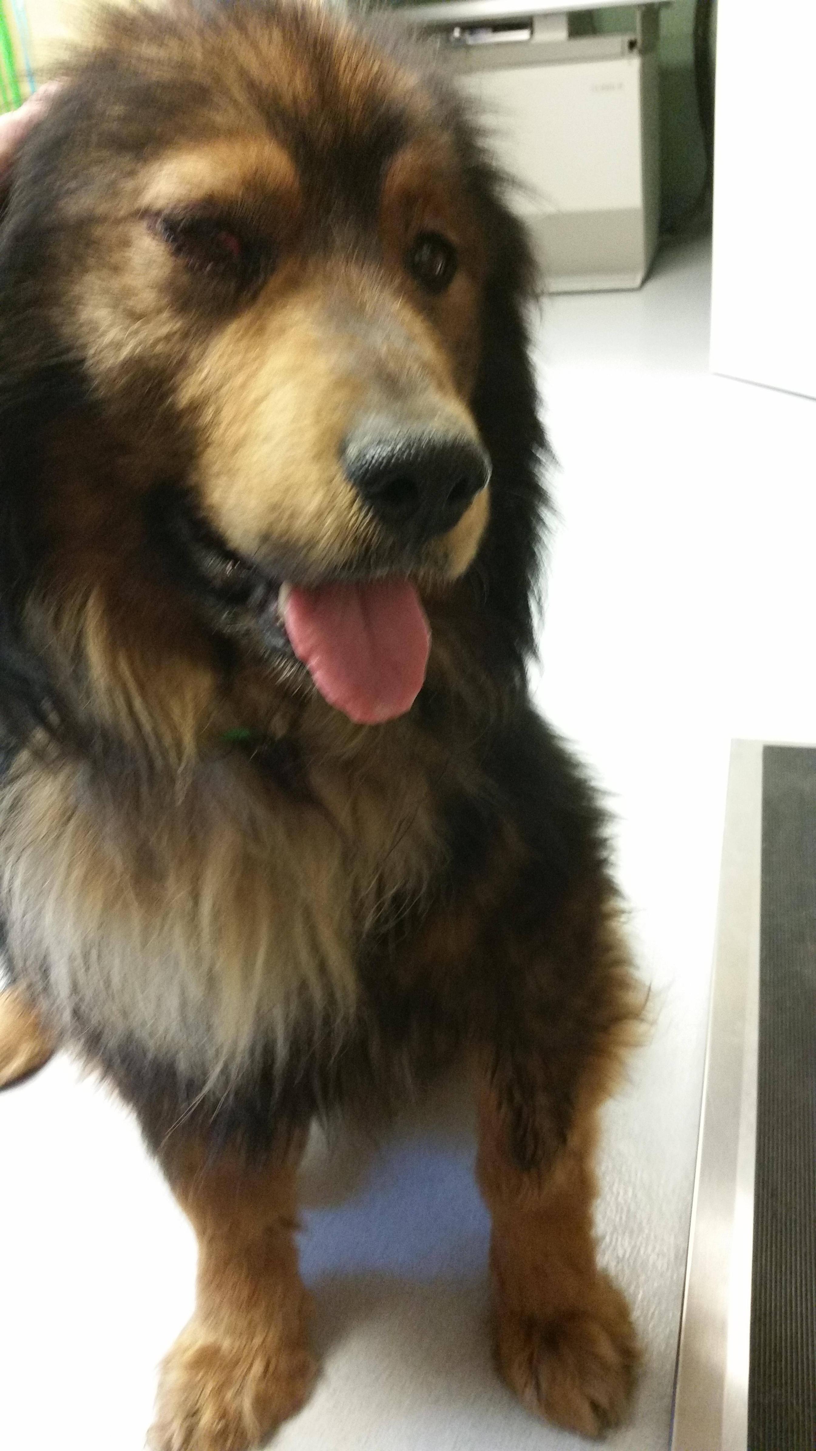 It was 90F and he was panting constantly so the vet suggested we get him a hair cut. It was supposed to be a lion cut but the lady botched it. He didn't seem to mind though and he was a lot more comfortable.