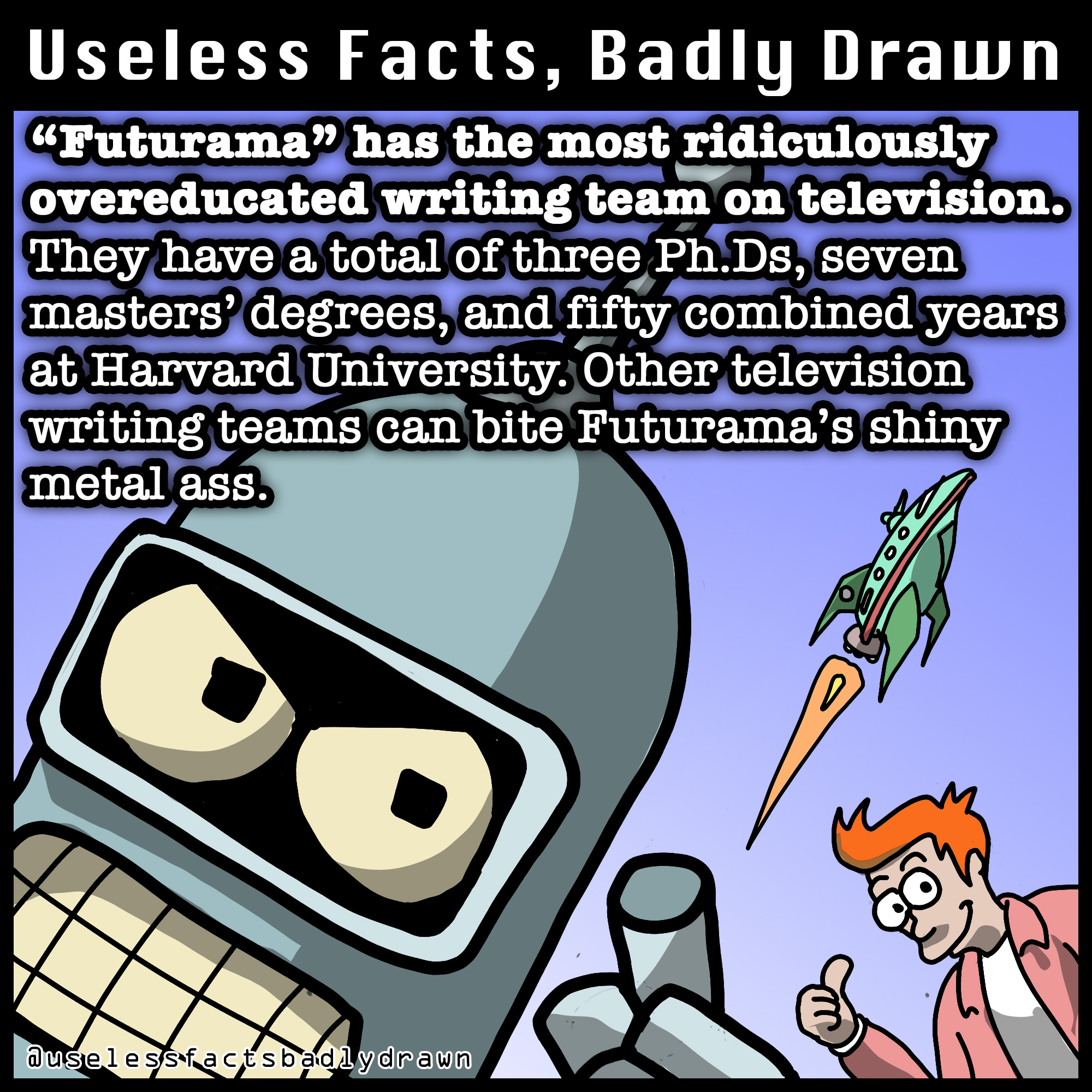 It was surprisingly hard to draw this one. Futurama has a very distinctive art style, deceptively simple-looking.