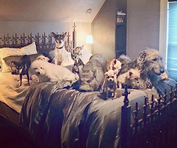 Each day Greig wakes up at 5.a.m in the morning to make breakfast for his big family. Most of the dogs have different diets. His schedule is filled with walks in the park, vet appointments…and lots of love and cuddles. “Whenever I sit or lie down at a dog-friendly level, there are always at least three or four of [dogs] attached,” Greig writes on Instagram.