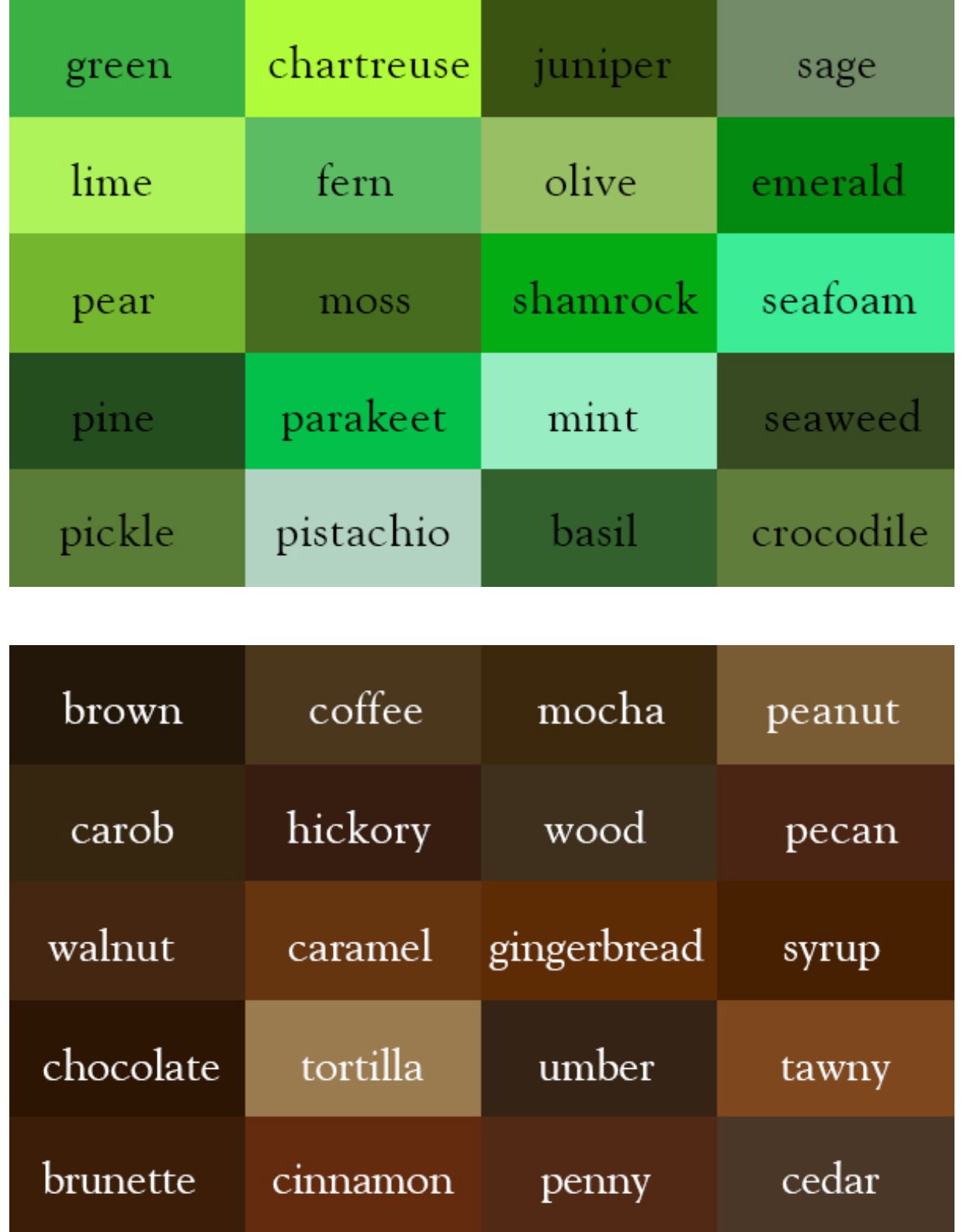 The idea of naming colours is surely so that when you say it, people have an idea of the shade you mean. When you say "jade", people >