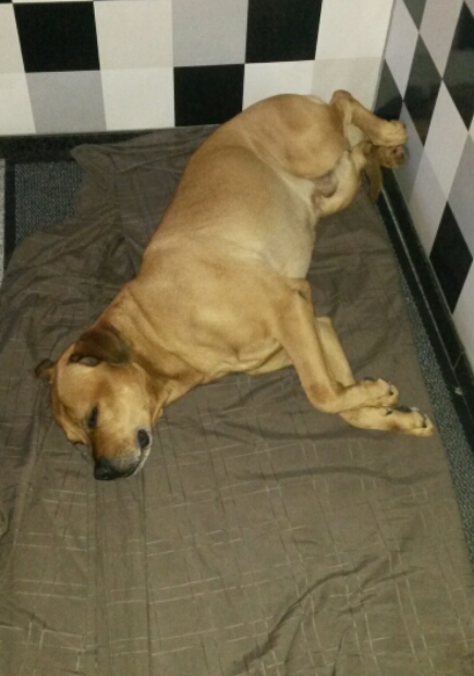 Ps. Sjeng is perfectly happy sleeping on his floor mat with blankets :)