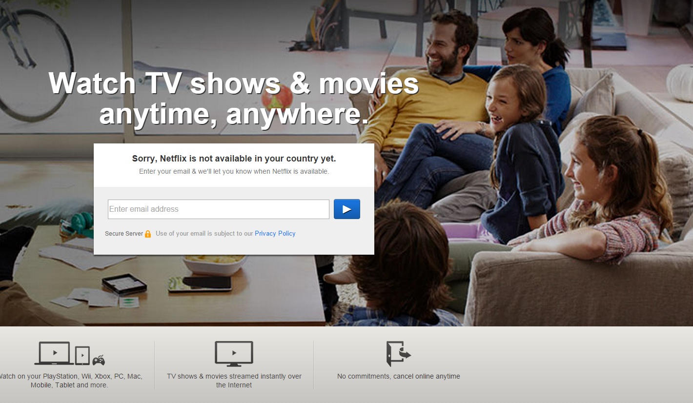 At least the one lady in the picture is as offended as I am at Netflix's attempt at punny humor. Anytime, Anywhere, just not where you are.