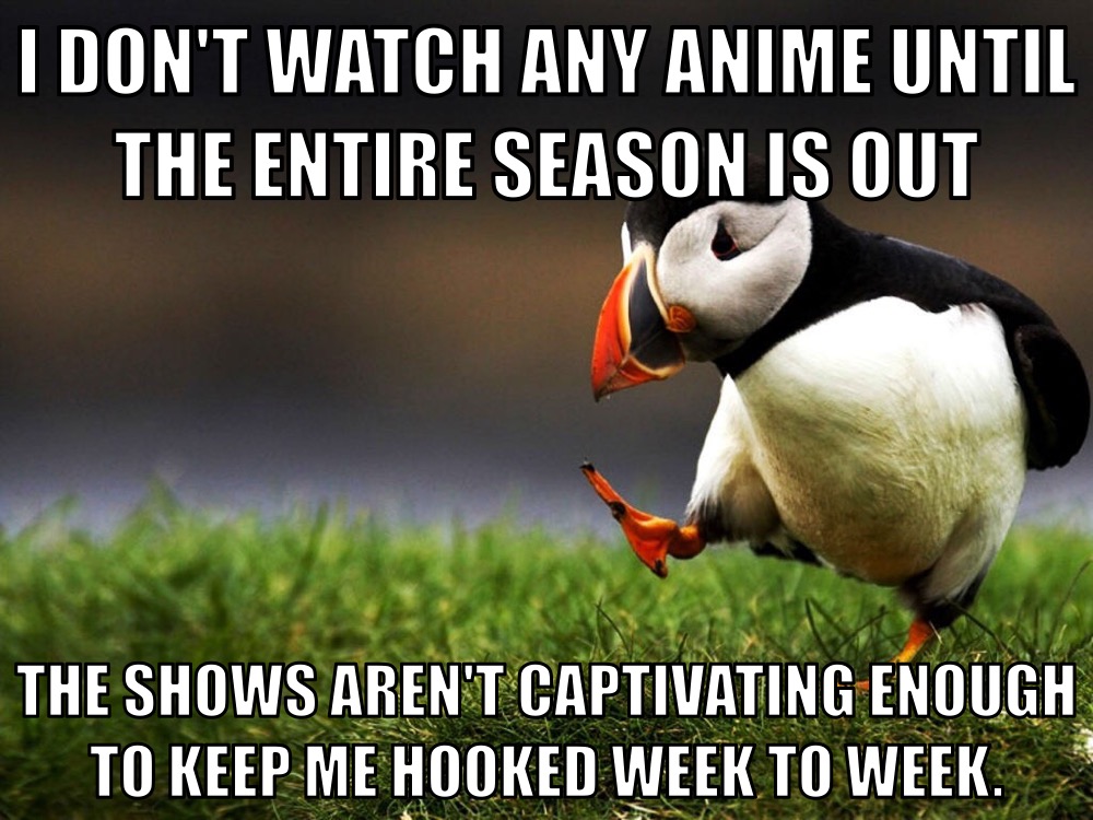 Don't know if it's me that has impossible standards or anime just being trash, but there's rarely anything good airing lately.