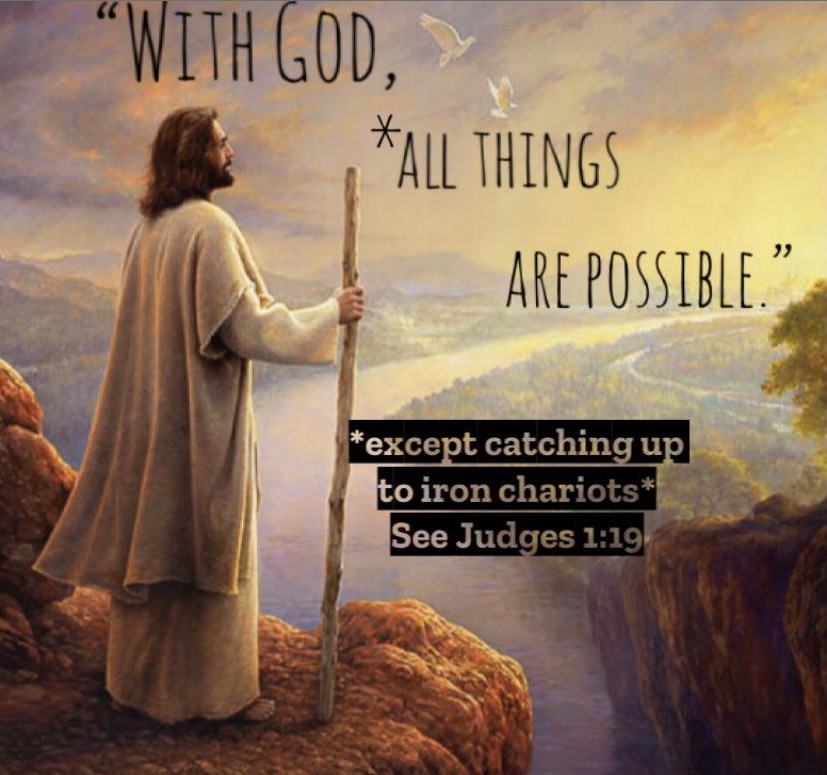 So clearly, Yahweh has a weakness to iron, and I fear no gods I know how to kill.