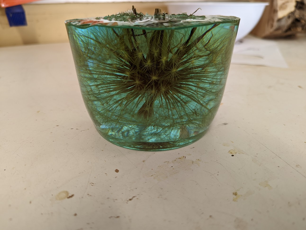 I didn't want to turn away too much of the plant so its not super round. It took a _lot_ of sanding to get it this clear