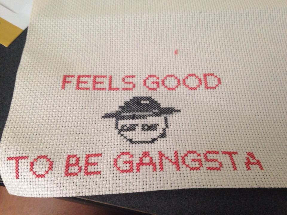My first cross stitching. Yes I'm a 20 year old guy and yes I'm ashamed.