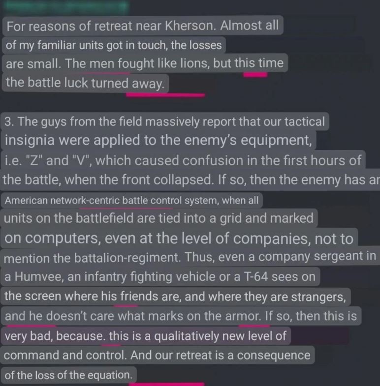 He is saying the Ukrainians assaulted them in captured Russian vehicles, and so they didn't know who to shoot at.