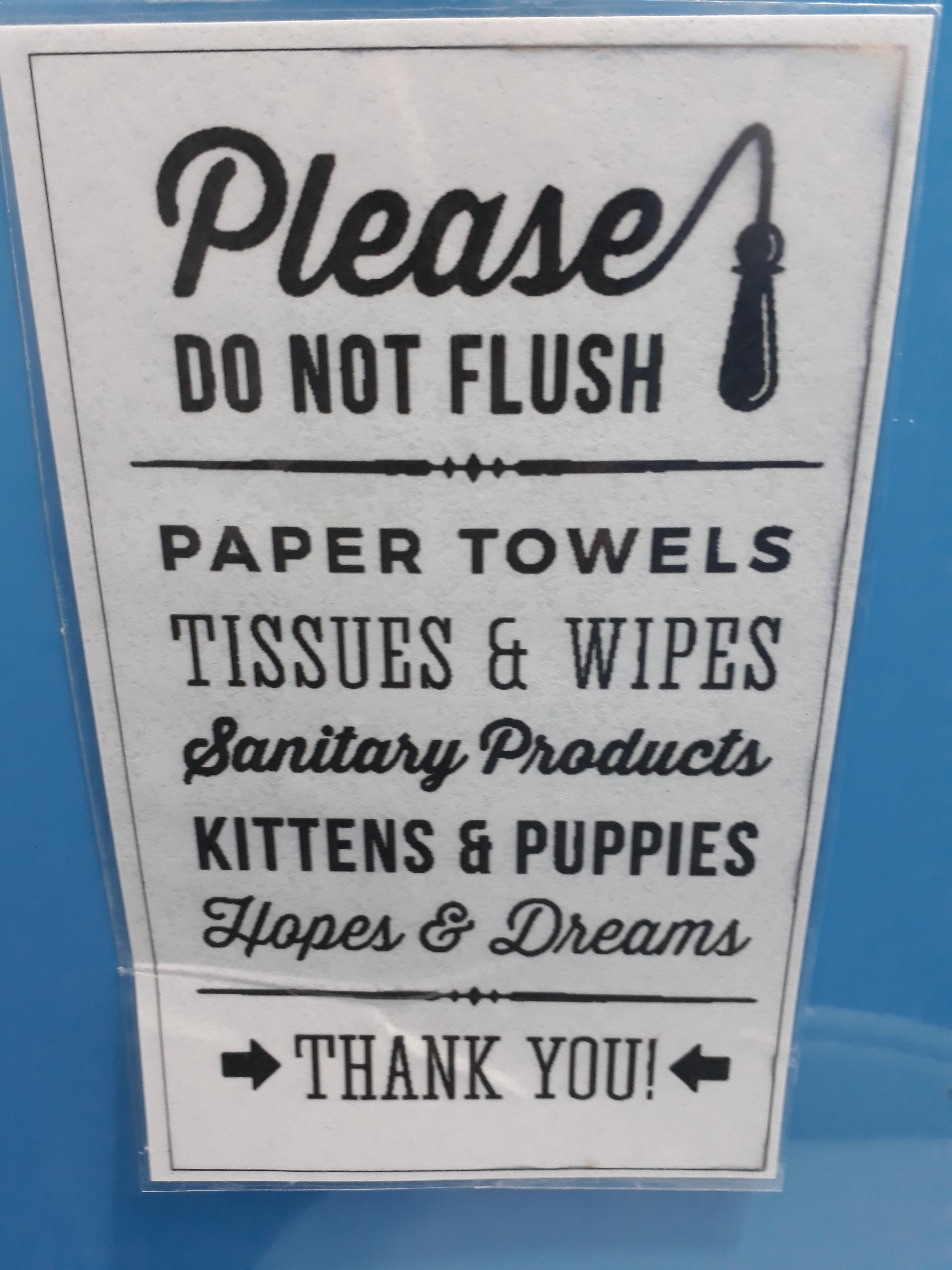 Did so many kittens and pups get flushed they had to make a sign?