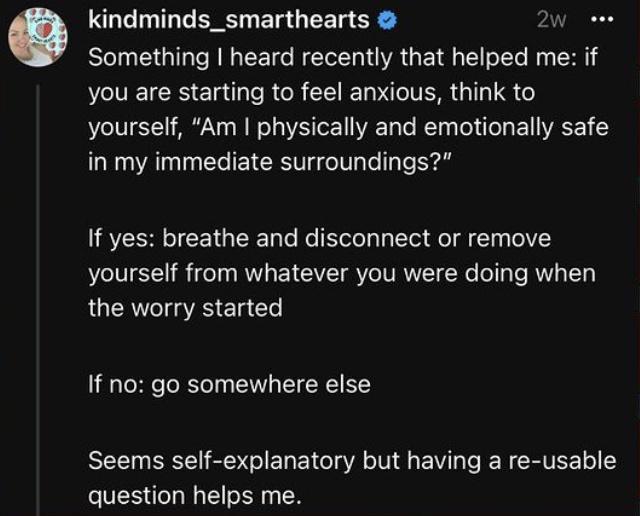 #6 Bruh, I'm not anxious about any imminent danger. I'm anxious about social interactions, if I'm actually loveable at all and whether I'll ever be able to find happiness during the rest of my life (or at least be able to treat my mental health) issues.