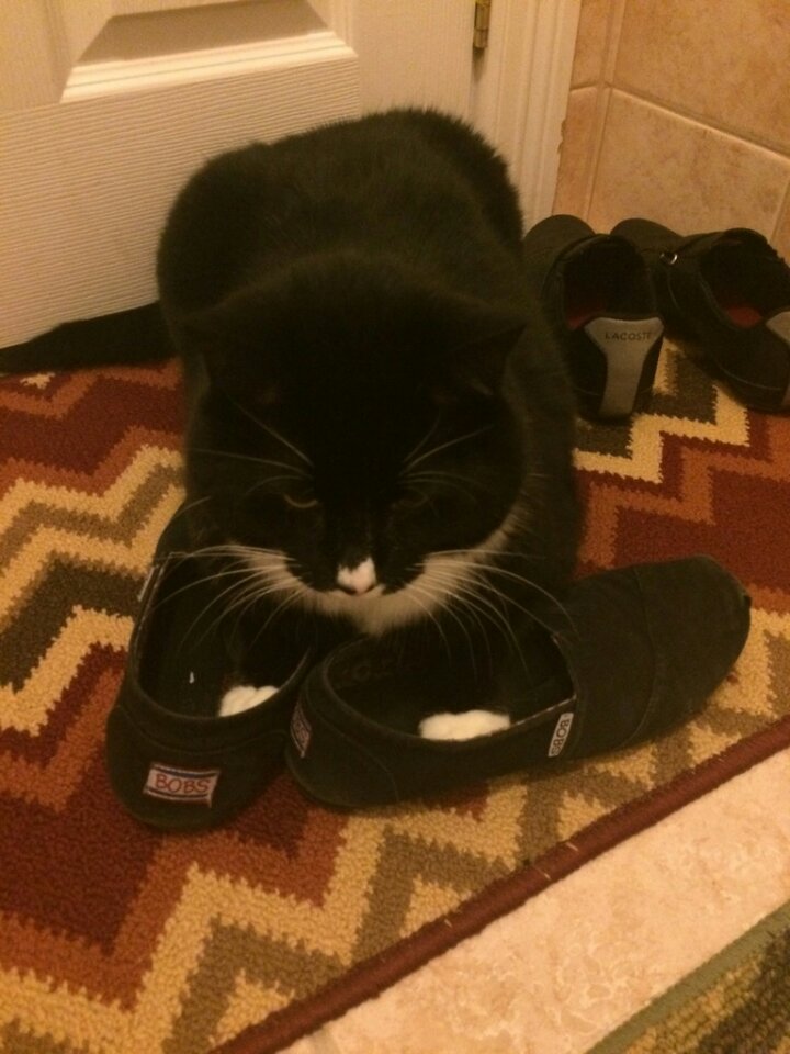 He tried to run away but the shoes were too big (National Cat Day)