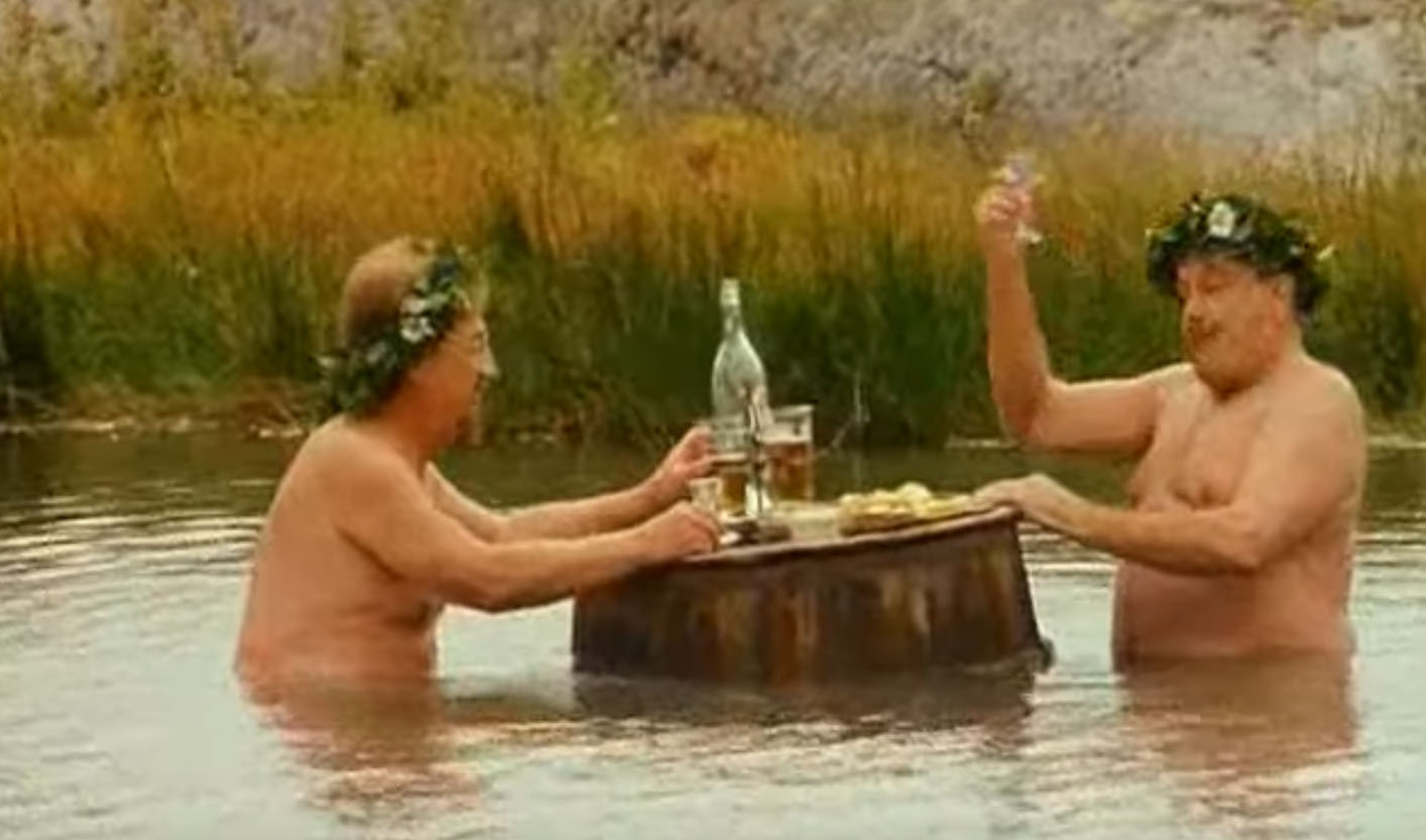Pic is Zorn and his friend from the movie ZORN (1994), Swedish movie and is the ultimate way to celebrate midsummer (vodka, herring, potatos, friends and water).