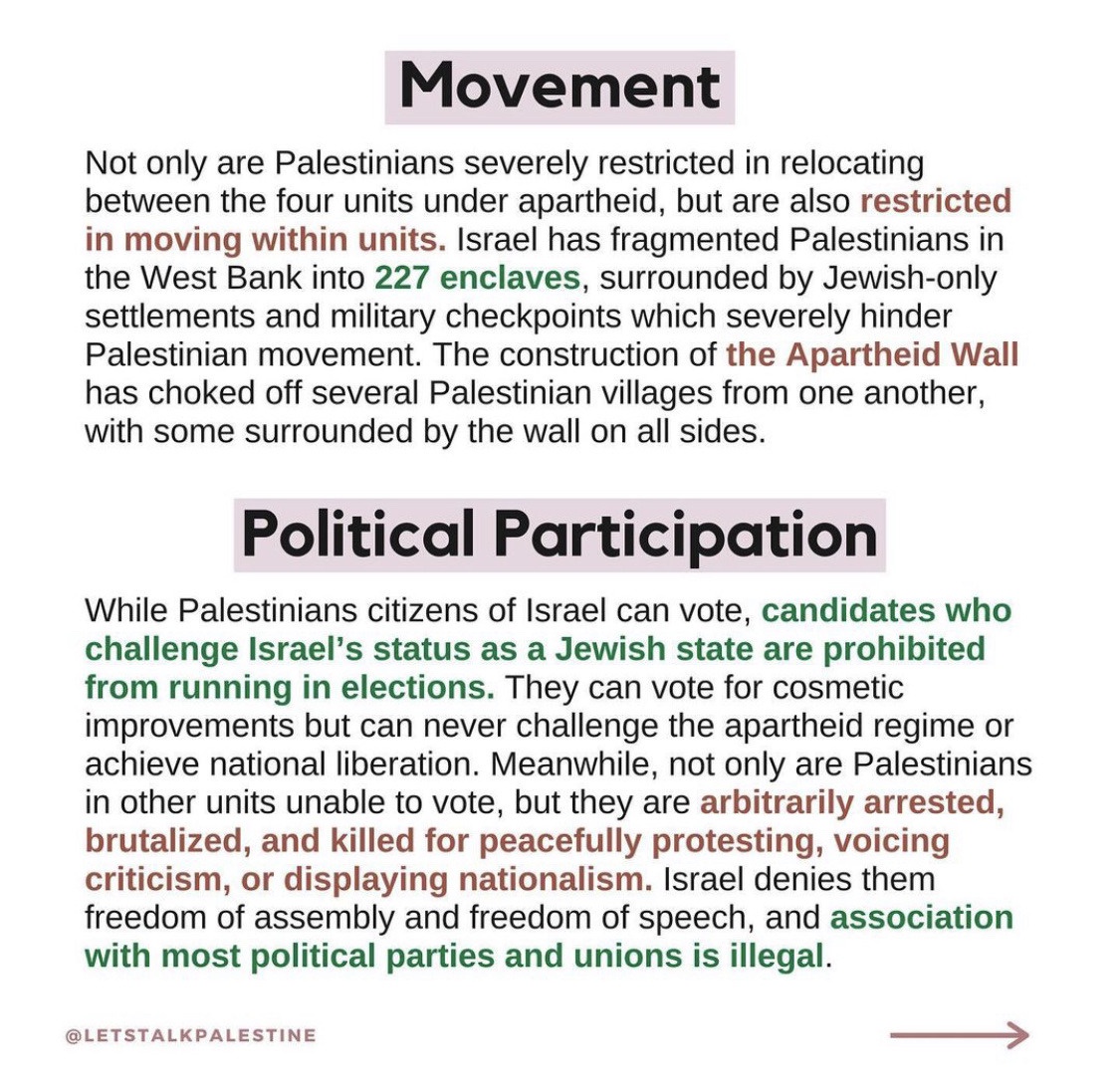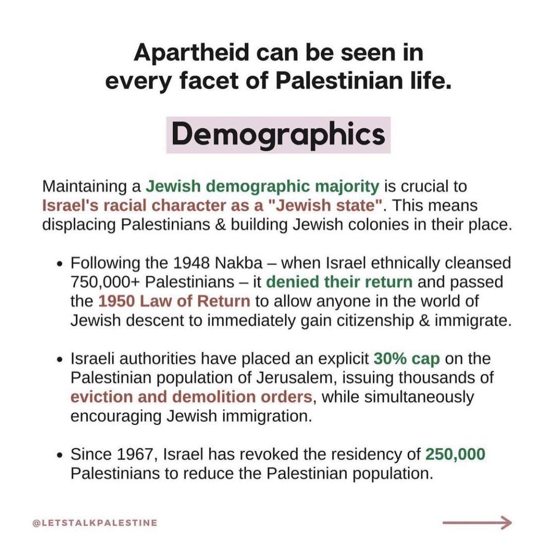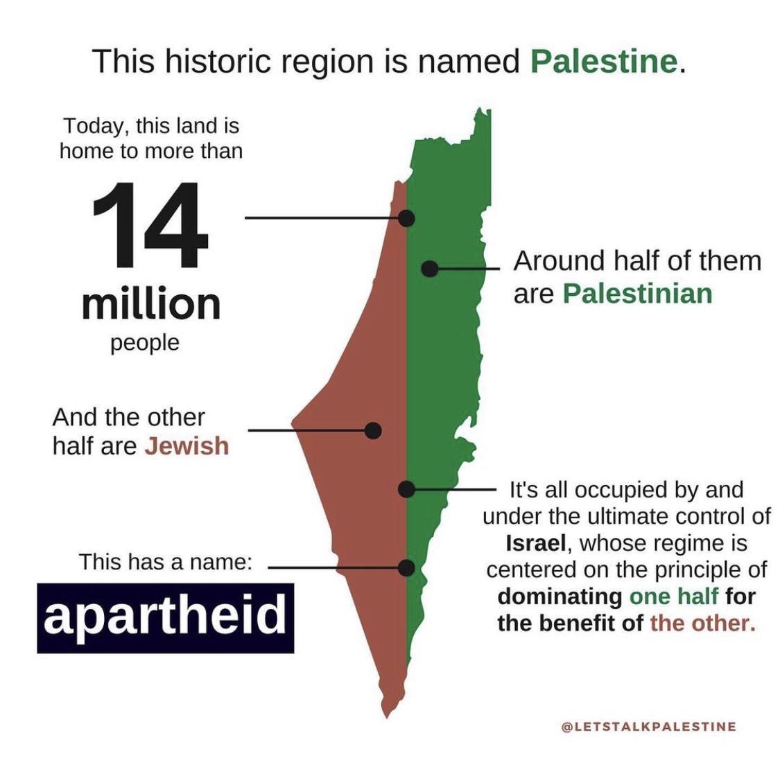 The phrase "from the river to the sea" is often used to mean removal of Israeli Jews from the entire area which would be just as wrong as removing (or abusing) all of the Arabs from the area. I don't think it's being used this way in this post (not with the genocidal implications anyway) but it is the first thing anyone will use to discredit the rest of the (excellently presented) information. Just a heads up more than anything else.
