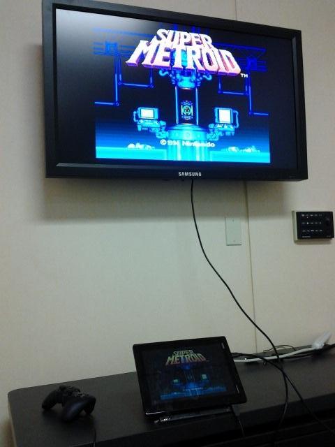 ThinkPad Tablet running ZNES with a PS2 USB controller, outputting video through HDMI.