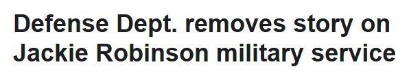 After some pushback, and in first line of the article, "The Department of Defense restored a story on its website highlighting Jackie Robinson's military service Wednesday..."
