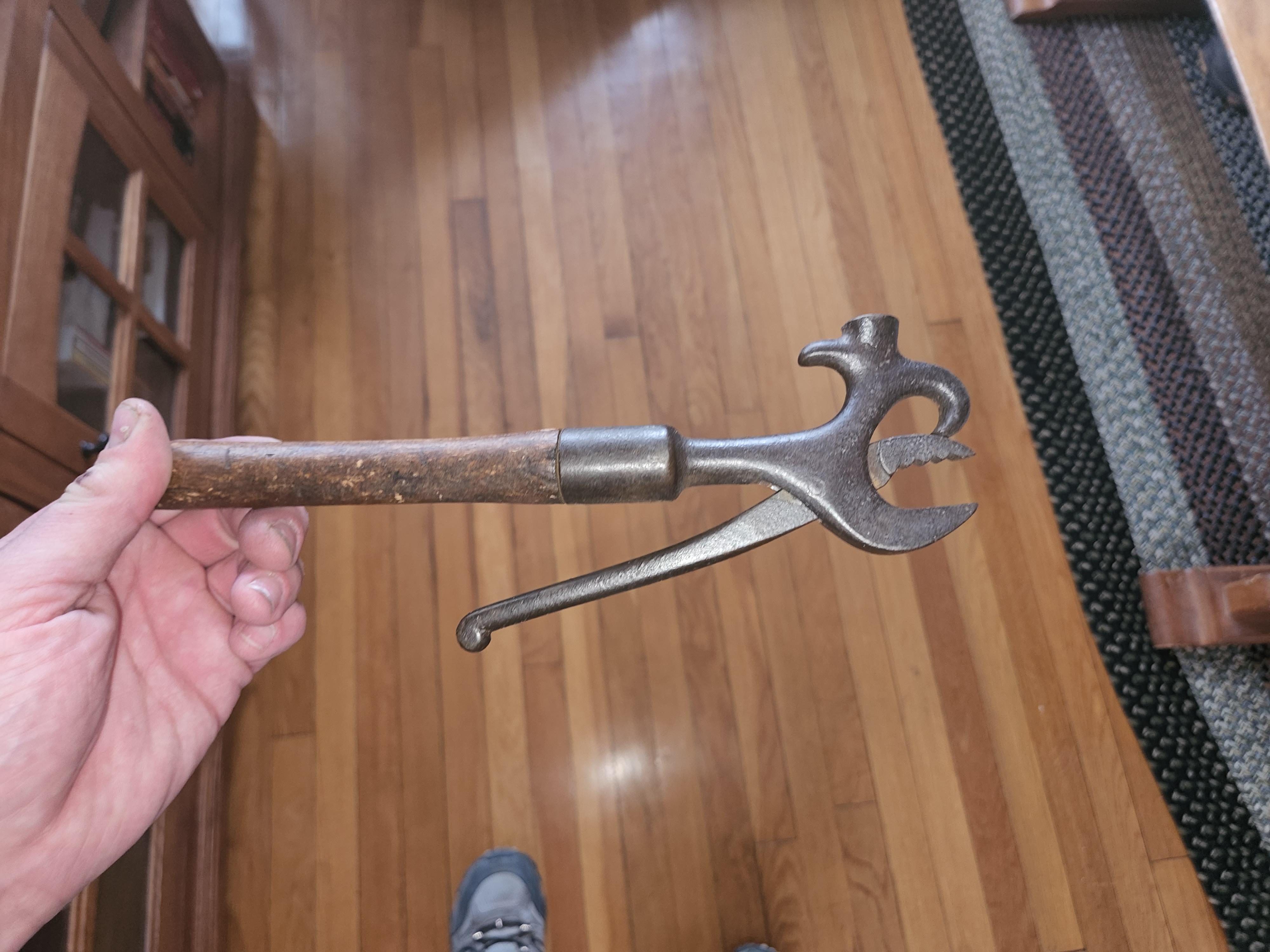 That is a super early multitool see the hammerhead, pliers, nail puller, can opener, etc