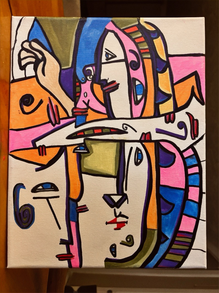 Progress 12x16” canvas acrylic paint mostly a little marker