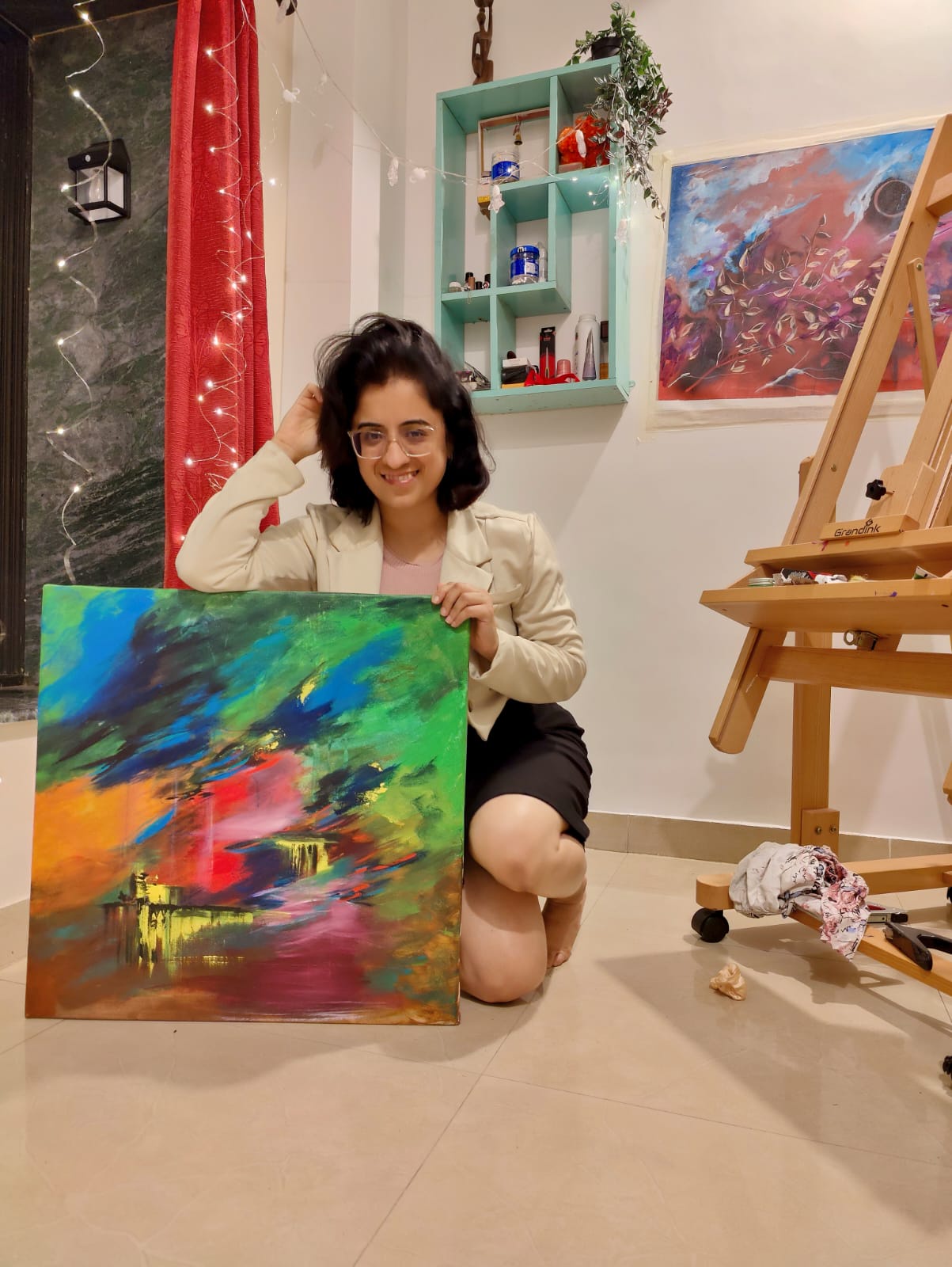 Presenting 'Light kissing the darkness' on 42*50cm canvas.