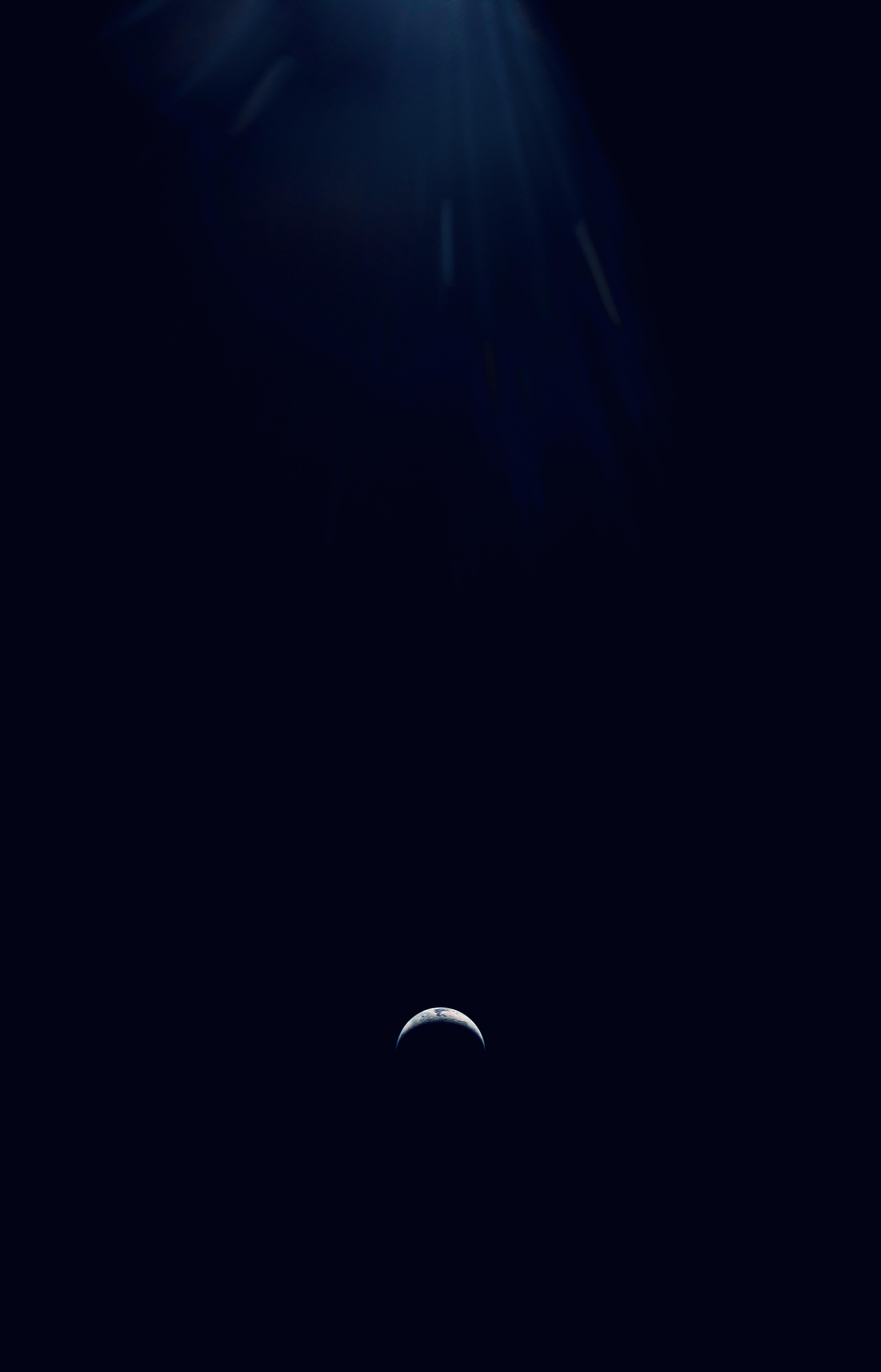 An illuminated sliver of Earth set against the blackness of space is seen through the window of the Orion spacecraft in this photograph from the Artemis II crew on the third day of their journey to the Moon.