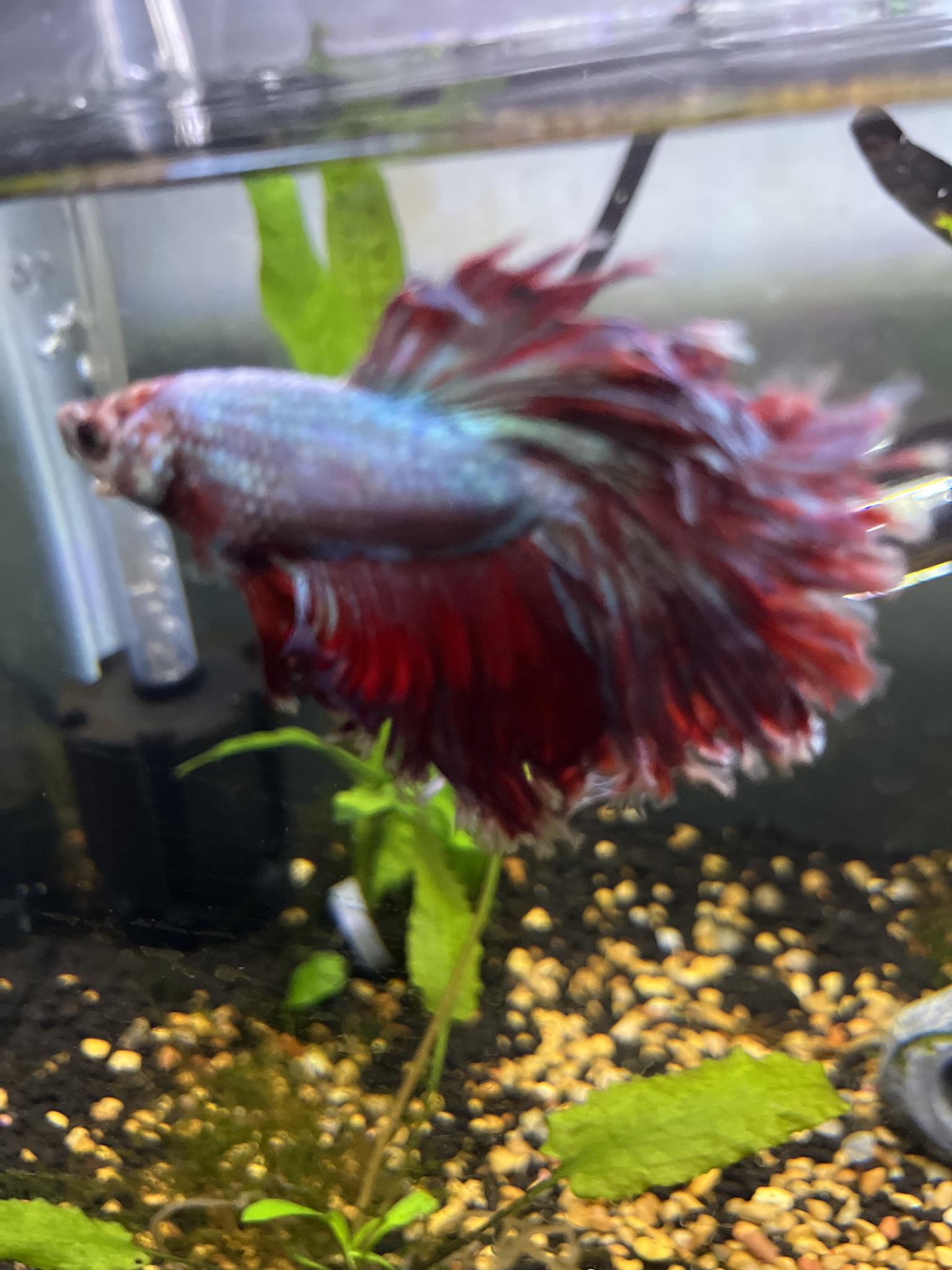 My First Betta Fish! Added him with my Peacock Endler Colony in the 13 Gallon Bowl.