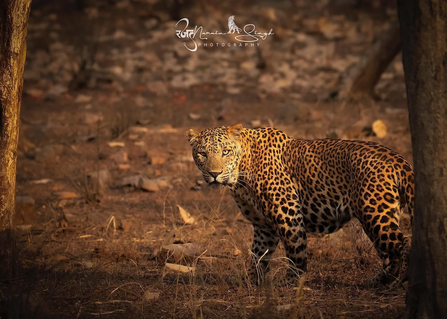 Photographer catches an intense moment of a leopard watching him