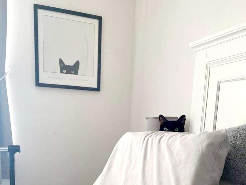 Aww, look--the cone has focused her hatred and now she lives only for revenge! Adorable. (´ᆺ`ʃƪ)♡