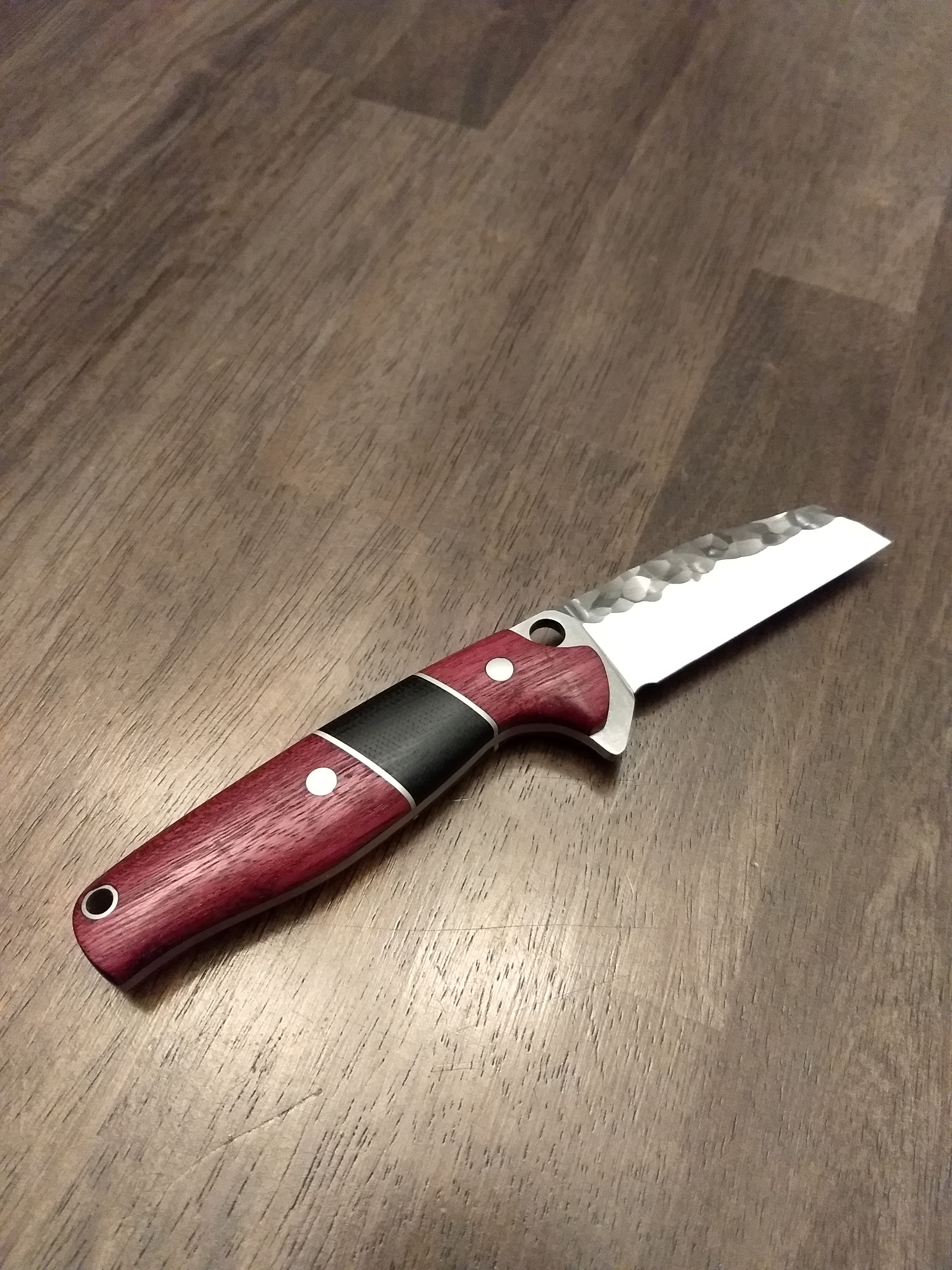 The hole is there because I originally hoped to submit this design to Spyderco. And the sharp spine is definitely a problem I need to fix.