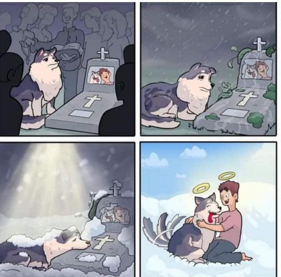 My dad passed away and his dog is a rescue. Poor thing gets excited seeing me because I wear some of his clothes and look a bit like him but she slowly realizes it's not him...