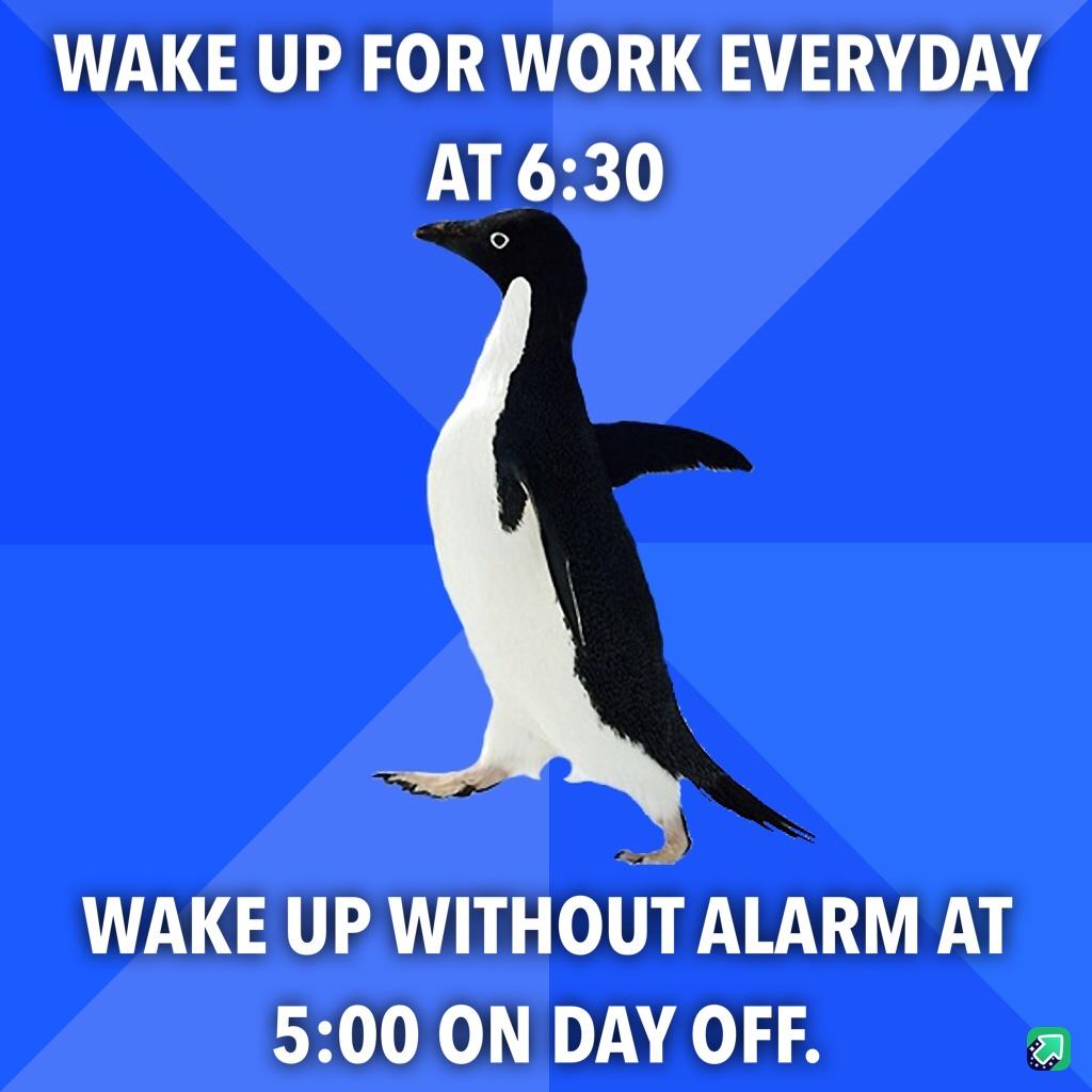 Literally as a was reading this my alarm went off at 7 am on a Saturday. Not mad because I've been up for an hour.