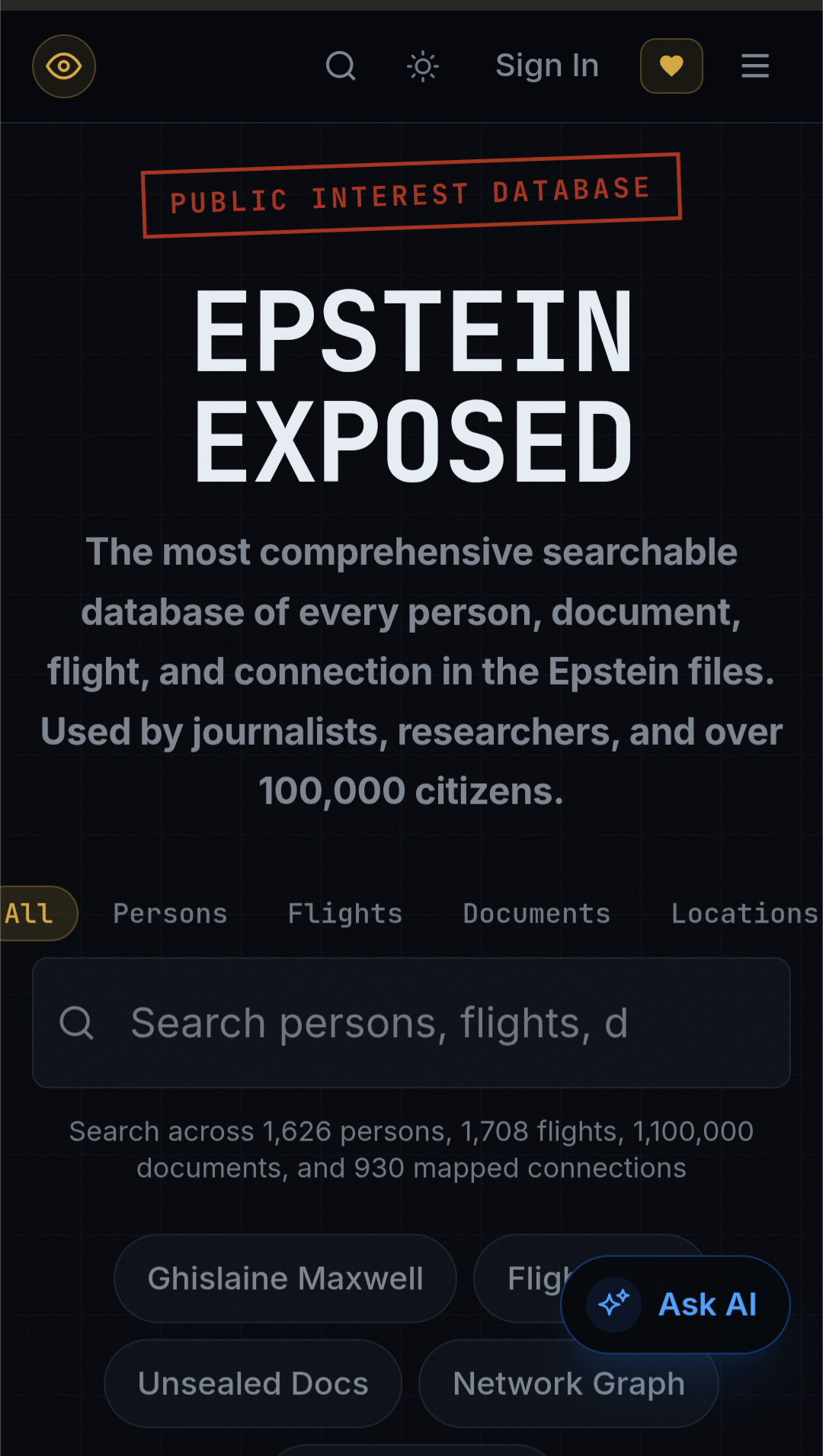 Public interest database: Epstein Exposed