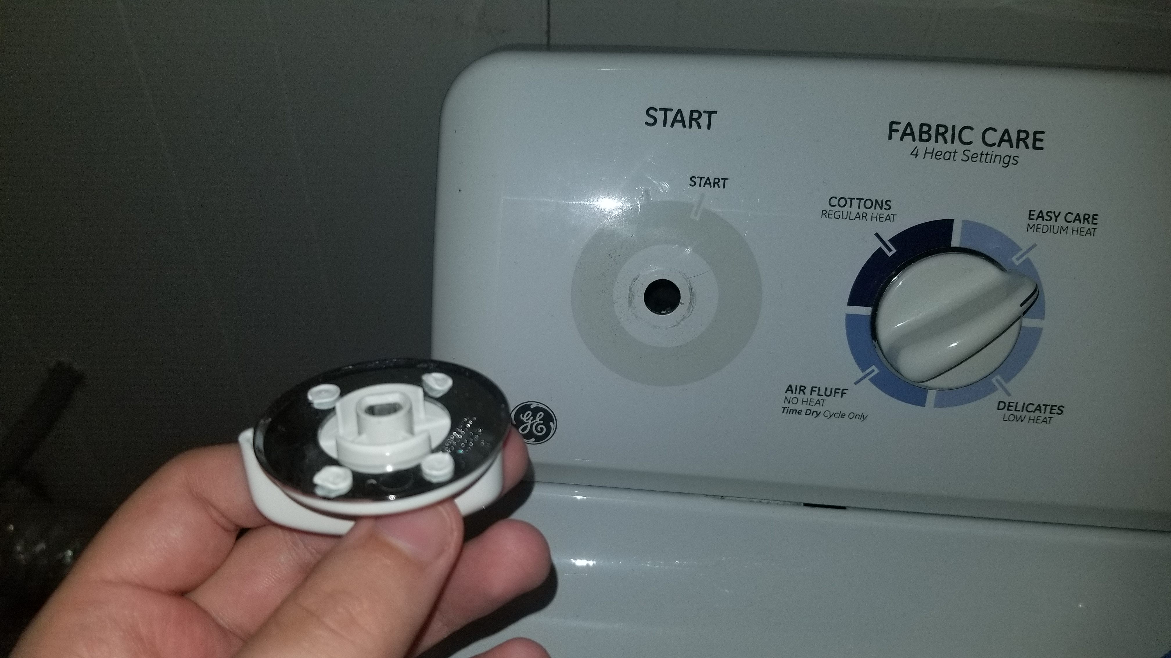Remove the back panel and look for the fallen piece. Dryers aren't complex so shouldn't be hard to find.