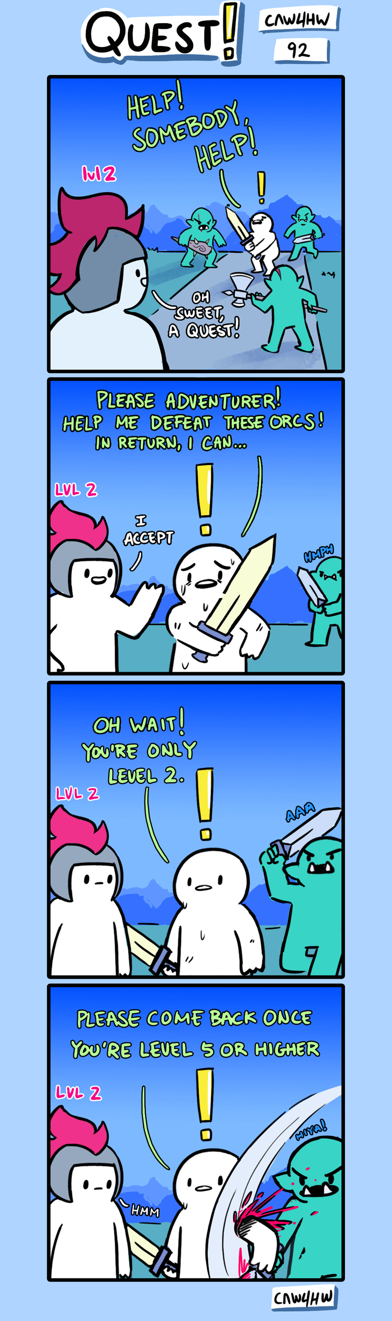 I'm making a comic a week for 100 weeks! Now on instagram! https://instagram.com/caw4hw/ https://www.facebook.com/CAW4HW/ http://www.webtoons.com/en/challenge/caw4hw/list?title_no=113206