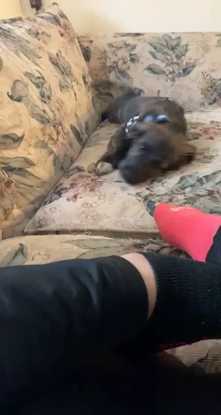 He’s a dog. He can’t see pink and he hates bandanas because they mess with his stumpy front legs. It was also a filter. Maybe therapy
