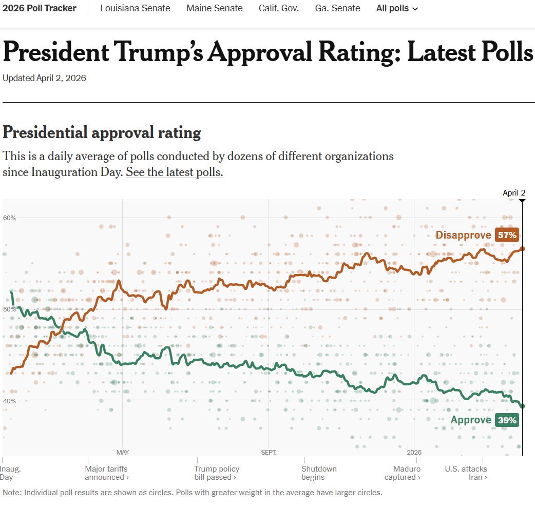 Amazingly he still has a 39% approval rating.
