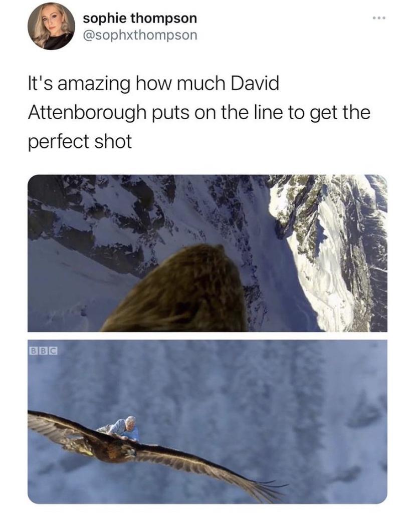 We need Sir Attenborough to tell us what to do with the pandemic. Everyone respects Attenbrough.