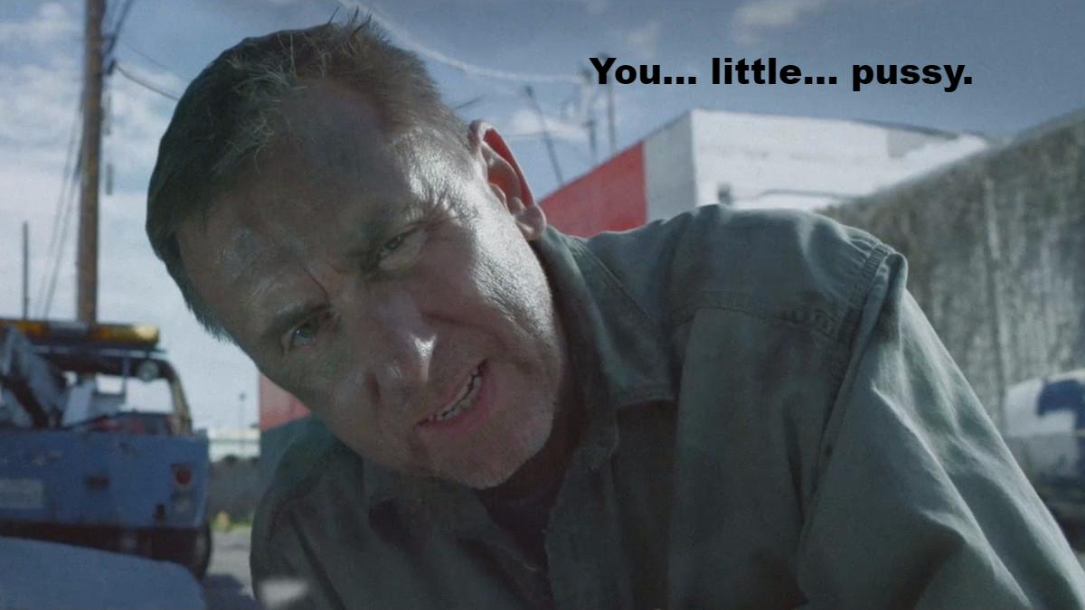 “Because I’m not a coward, like you!” She says, more growling than talking.