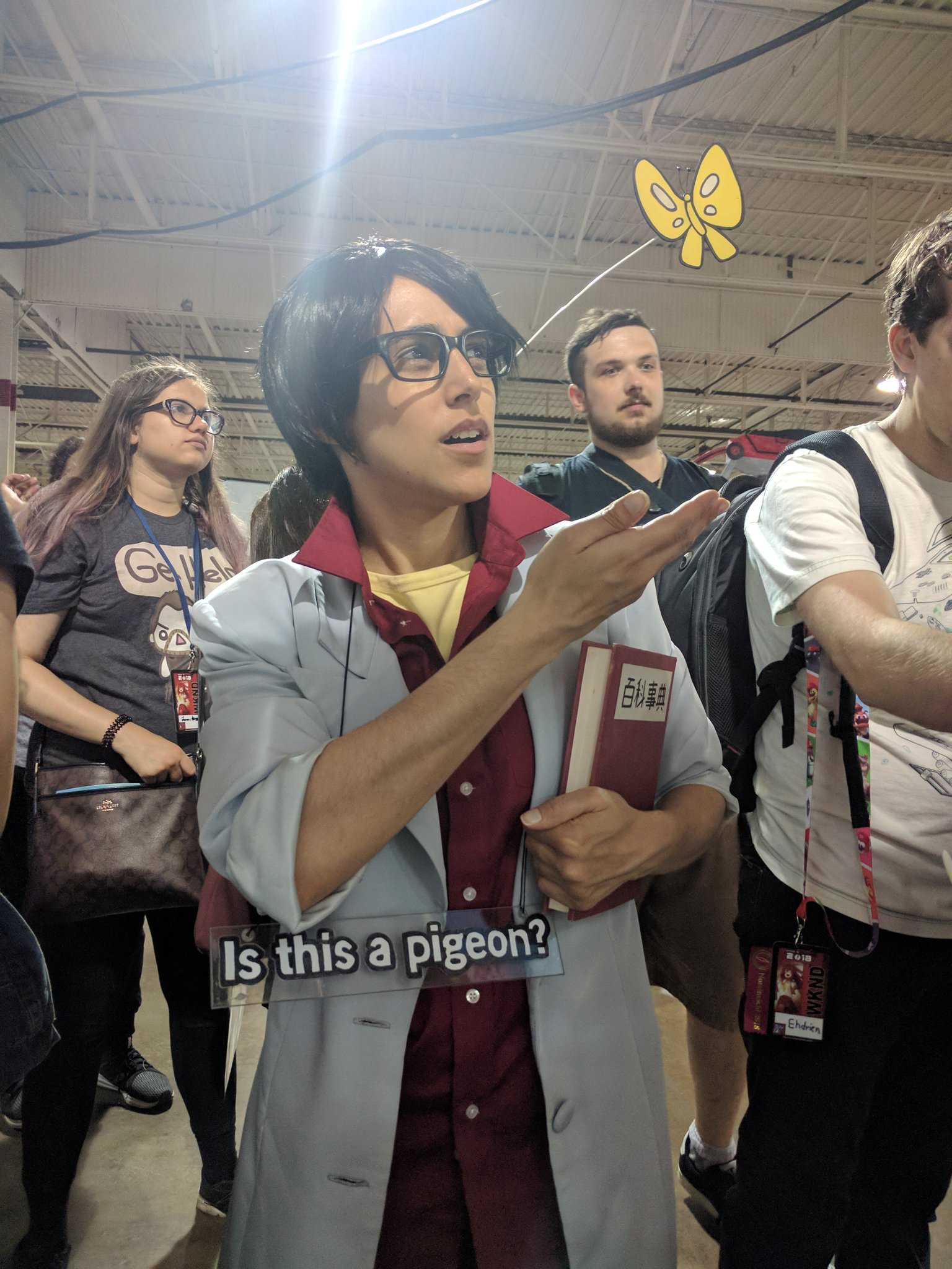 in the original anime he says "is this a pidgeon?"