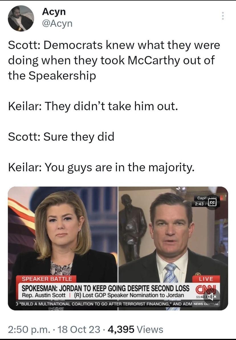 Trump's party's disfunction is their own damned fault and we shouldn't enable them even if it is temporarily to the disadvantage of the country.
