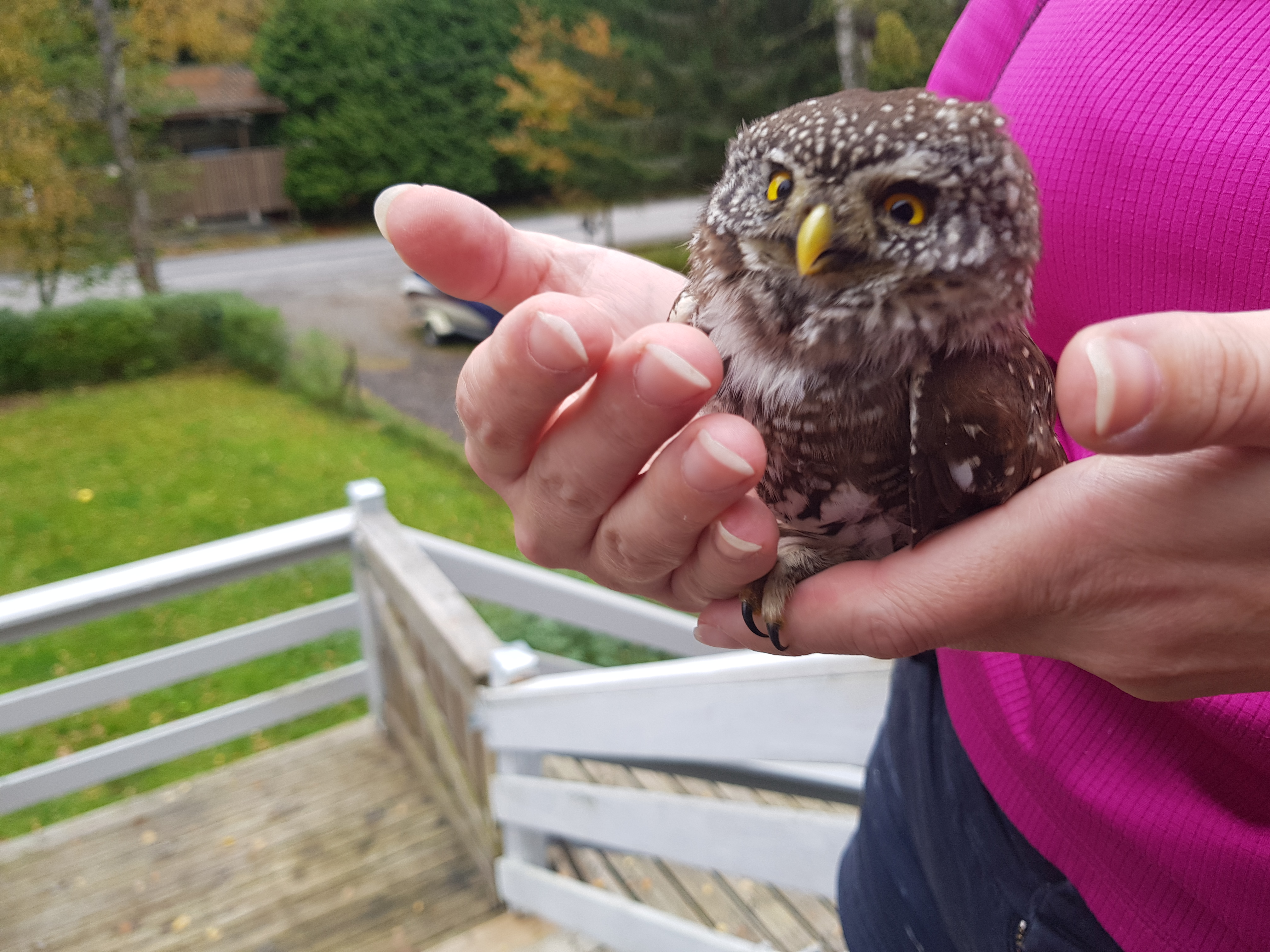 Baby owl just flew into our window. Still alive and breathing but might have a concussion