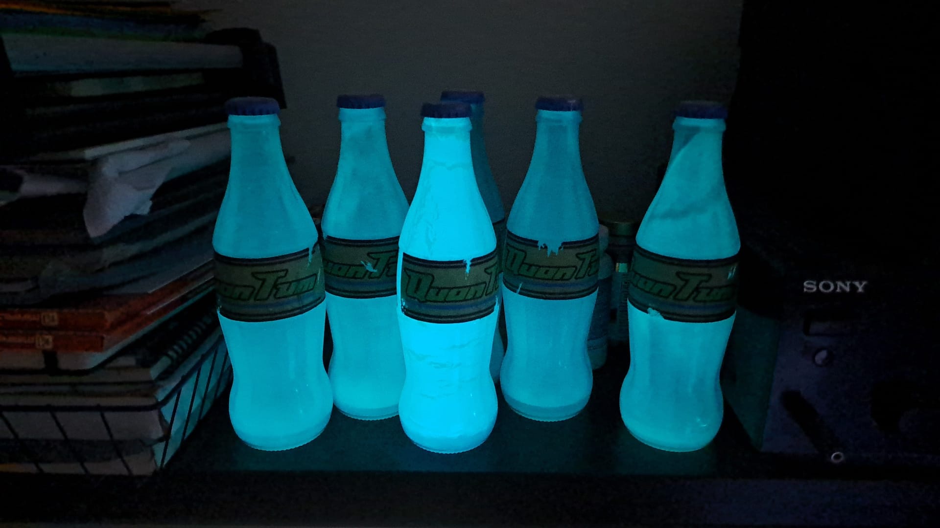What did you use to color the bottles? I made potion bottles for halloween and coated the inside with modgpoge mixed with food coloring and then led lighys inside for glow. My body heat plus the lights kind of melted it.