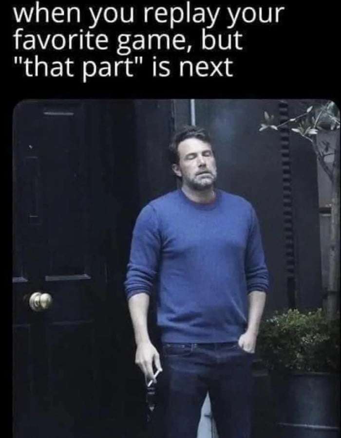 Played Elden Ring a little too many times this past year. Lake of Rot, consecrated snow field, and a couple of the more tedious dungeons had me like this pretty well every time. Still love the game though