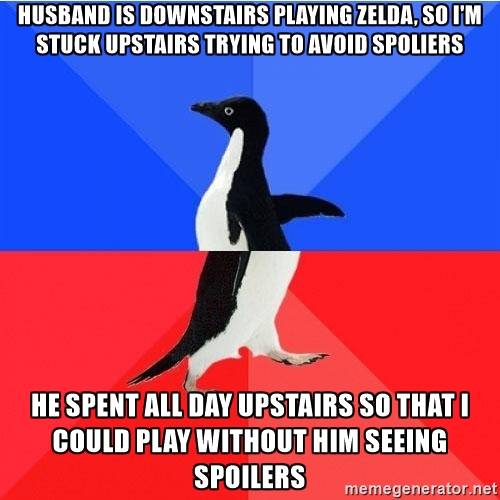 Me and my husband are like this too. He's waiting to play FF15 while I finish it. He gets to play on the big TV on tuesdays when he plays1/2