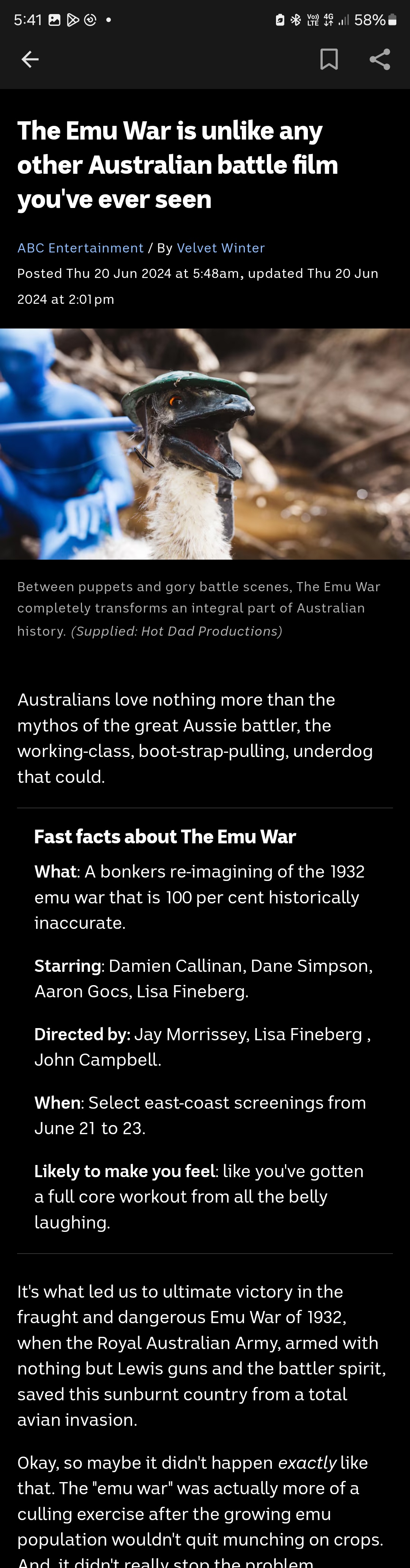 The Emu Wars got made into an Aussie comedy.... this could be absolute gold. I have to get a copy