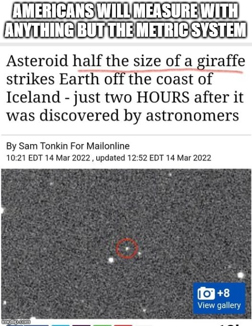 Americans will measure with anything but the metric system
