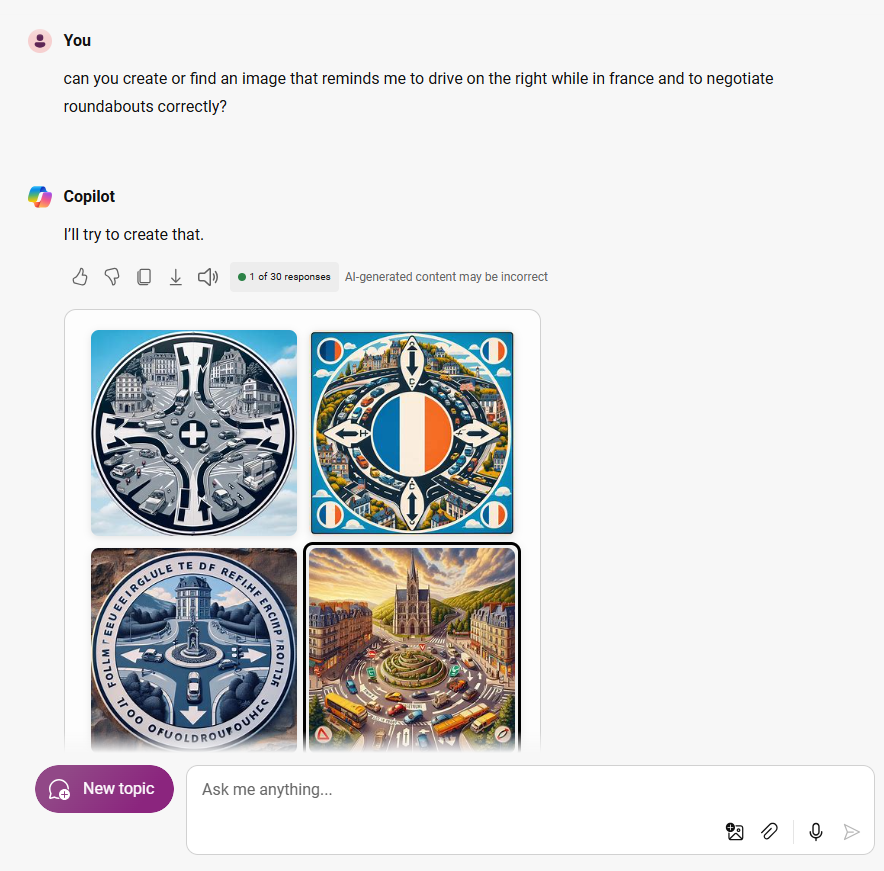 I asked Microsoft's AI Copilot to help me not have a car accident while in France.