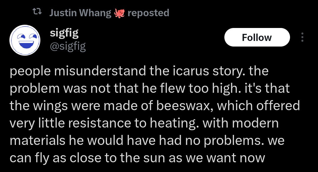 That was the point of the story. Daedalus, the expert who Tony Starked the wings with improvised materials, told him how to operate them properly and flew successfully to safety. Listen to experts.